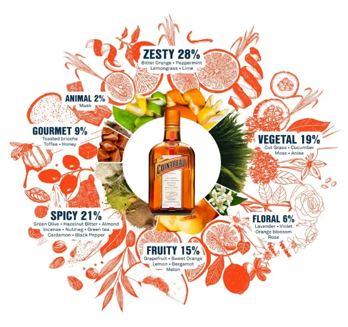 - Cointreau, the orange liqueur par excellence, with its powerful citrus aromas, available in different containers,
